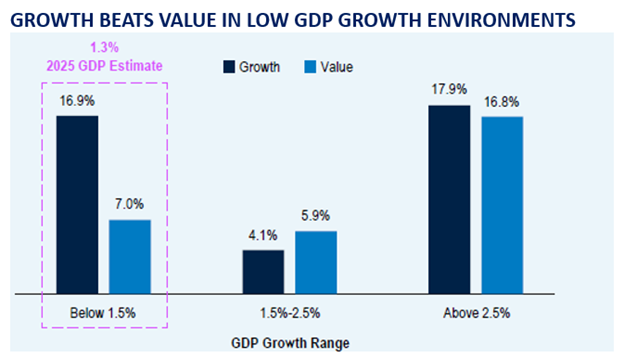 Il Growth batte il Value in contesti di bassa crescita del PIL
