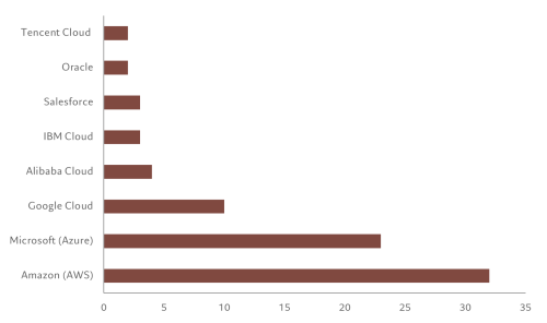 L’IA generativa è basata sui dati e necessita di una potente infrastruttura cloud fornita da grandi piattaforme, dette hyperscaler. Di queste fanno parte AWS (Amazon Web Services), GCP (Google Cloud Platforms), Microsoft Azure e Meta (cloud privato). Insieme, rappresentano circa il 78% di tutta la capacità globale del cloud (si veda la Fig. 2). Nei primi tre mesi del 2023, i ricavi dei servizi di infrastruttura cloud hanno raggiunto i 63,7 miliardi di dollari (un aumento su base annua di 10 miliardi di dollari) e prevediamo che questa forte crescita continui.